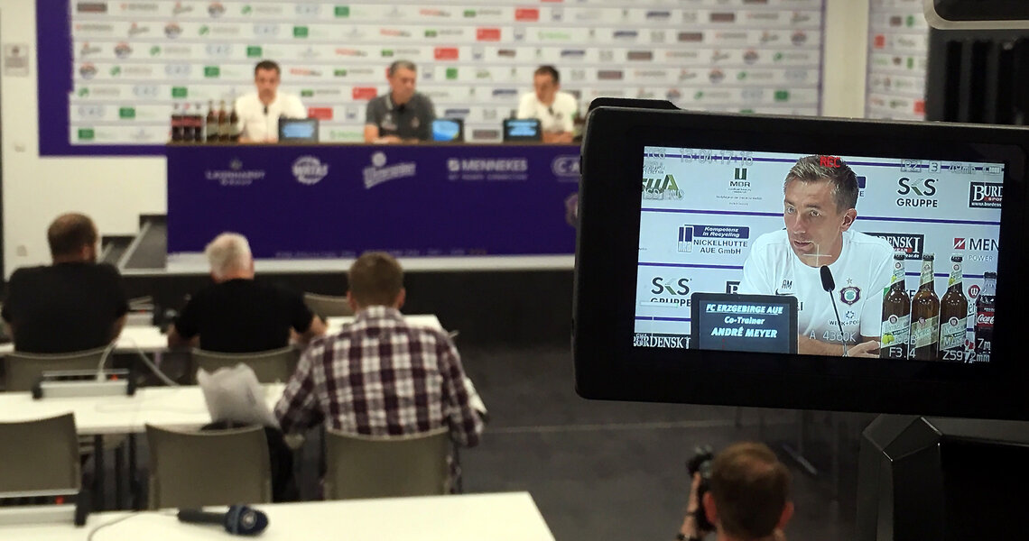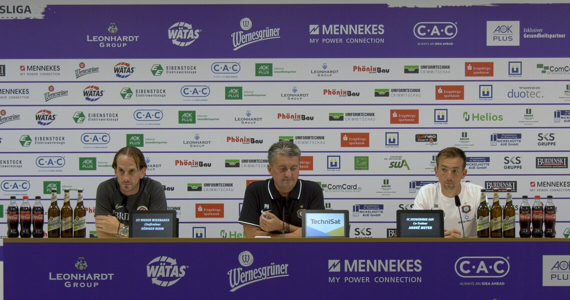 Sonntag, 4. August 2019 - 2. Spieltag FC ERZGEBIRGE AUE - SV WEHEN WIESBADEN 3:2 (2:1) Zuschauer: 9.500 im Erzgebirgsstadion Aue DIE PRESSEKONFERENZ NACH DEM SPIEL DER VEILCHEN GEGEN DEN SV ...