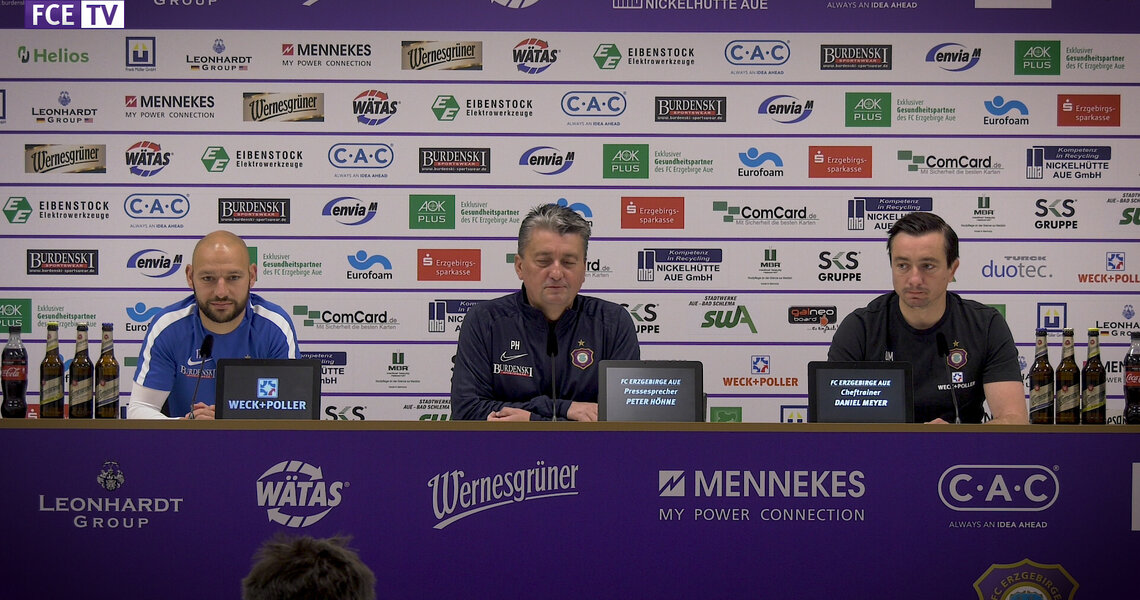 Die Pressekonferenz mit FCE-Cheftrainer DANIEL Meyer und Mittelfeldspieler PHILIPP RIESE ...