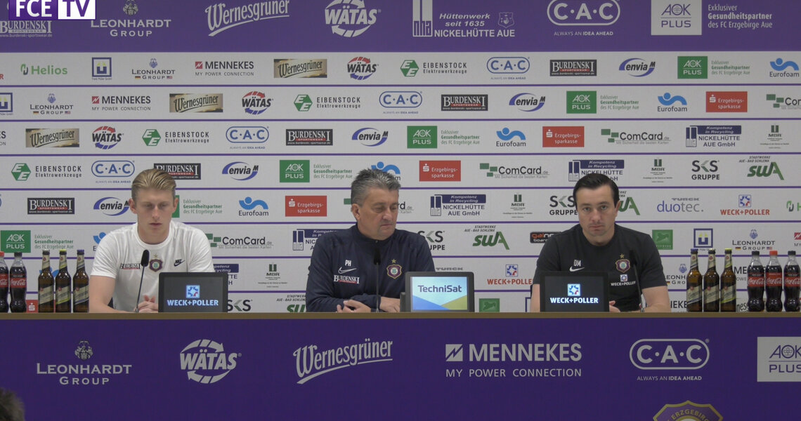 Die Pressekonferenz mit Cheftrainer Daniel Meyer und Torhüter Robert Jendrusch: ...