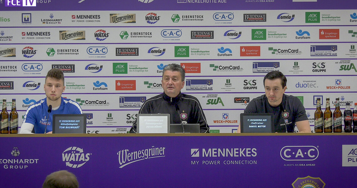 Die Pressekonferenz vor dem Heimspiel gegen den MSV Duisburg mit Cheftrainer Daniel Meyer und Mittelfeldspieler Tom Baumgart ...