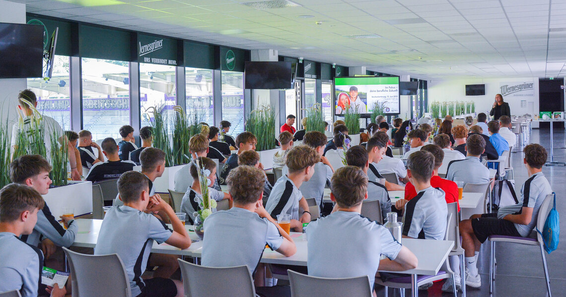 Die Wernesgrüner Lounge des Erzgebirgsstadions war Austragungsort des Berufsinformationstages vom Bildungswerk der Sächsischen Wirtschaft in Kooperation mit Sachsenmetall.