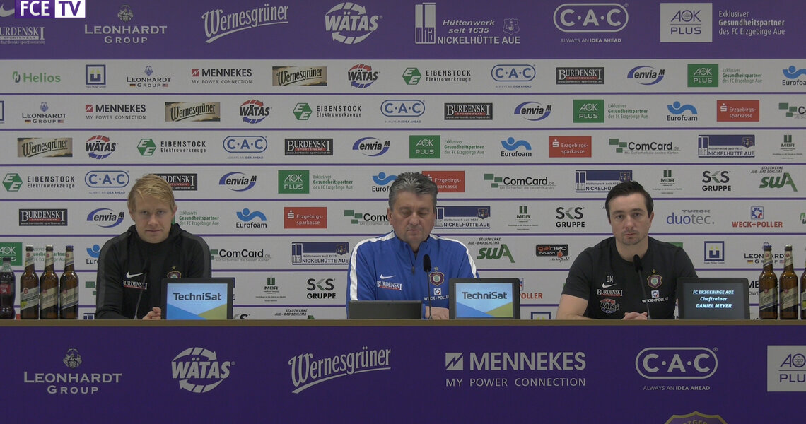 Die Pressekonferenz mit Cheftrainer DANIEL MEYER und Mittelfeldspieler JAN HOCHSCHEIDT ...