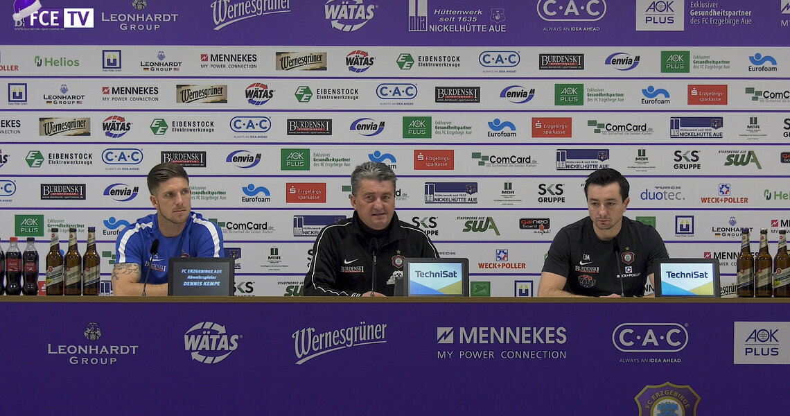 Die Pressekonferenz mit Cheftrainer Daniel Meyer und Abwehrspieler Dennis Kempe vor dem Heimspiel gegen den SV Darmstadt 98. ...