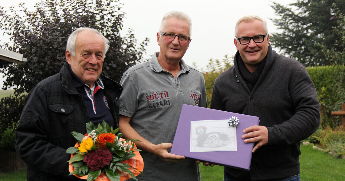Heute feiert unser ehemaliger Torhüter und langjährige Mannschaftskapitän Jörg "Flocke" Weißflog seinen 60. Geburtstag. FCE-Geschäftsführer Michael Voigt und Förderkreismitglied Herbert Ischt ...
