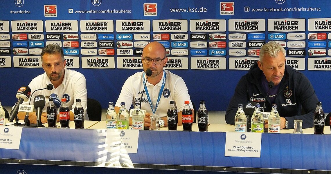 Auf der Pressekonferenz blickten beide Cheftrainer auf das Spiel im Wildparkstadion Veilchen-Chefcoach PAVEL DOTCHEV KSC-Cheftrainer TOMAS ORAL PASCAL KÖPKE hatte sich das Spiel der Veilchen bei ...