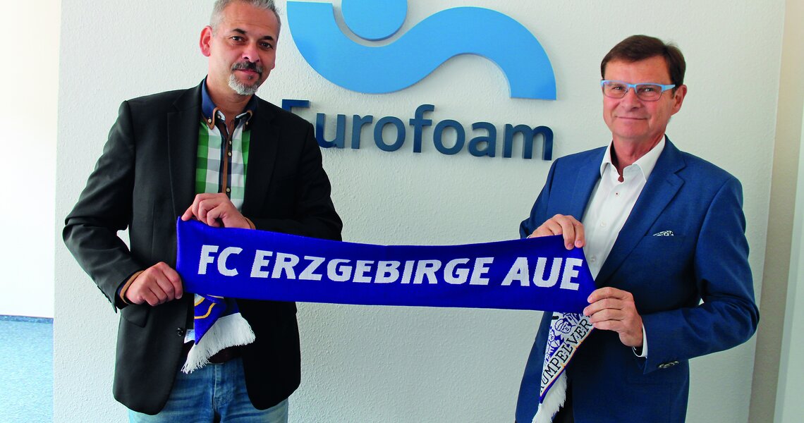 _Per Handschlag und Unterschrift besiegeln Matthias Jancic, Leiter des Werks Sachsen der Eurofoam Deutschland GmbH, und FCE-Marketingleiter Enrico Barth am Montag die Fortsetzung ihrer Partnerschaft ...