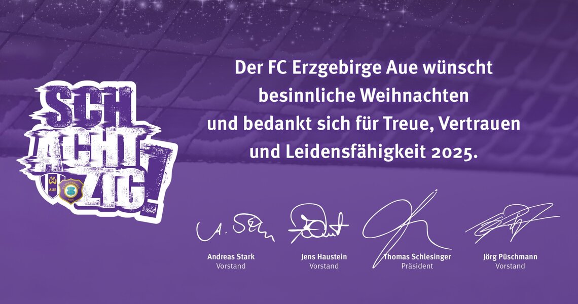 Vorstand, Aufsichtsrat und Ehrenrat des FC Erzgebirge Aue wünschen Frohe Festtage!