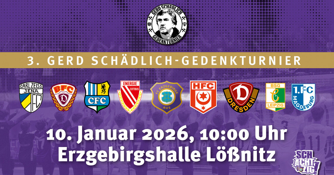 Am 10. Januar 2026 heißt es zum Auftakt des Jubiläums-Jahres: Zum Ersten, zum Zweiten und zum Dritten! Denn das erfolgreiche Gerd Schädlich-Gedenkturnier für U14-Mannschaften findet zum dritten Mal in Lößnitz statt.
