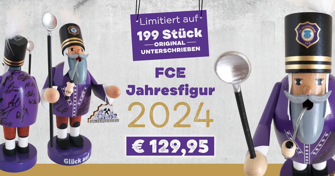 Darauf haben viele Fans und Sammler bereits gewartet: Die traditionelle Jahresfigur des FC Erzgebirge Aue in limitierter Auflage für 2024 ist ab Freitag um 10 Uhr im FanShop am Erzgebirgsstadion für 129,95 Euro erhältlich.