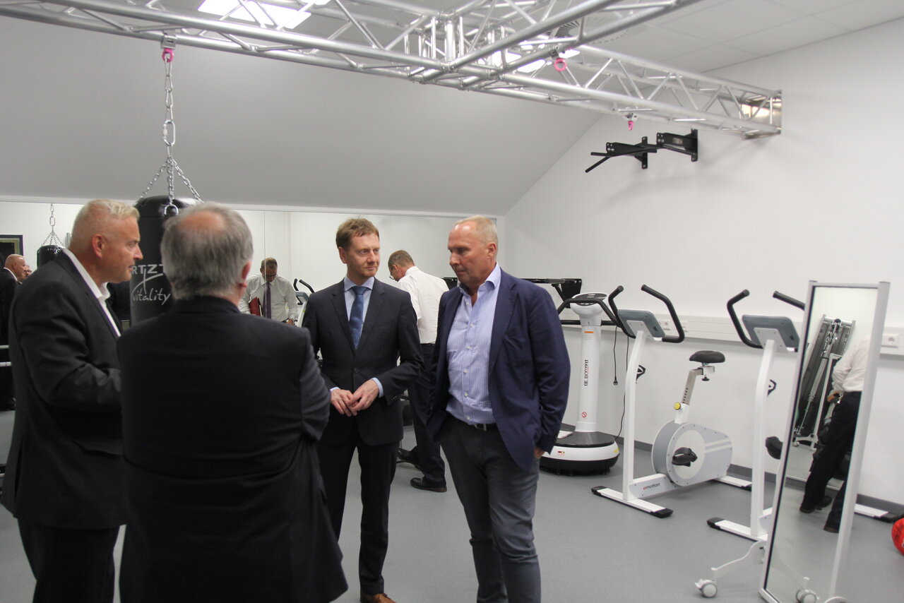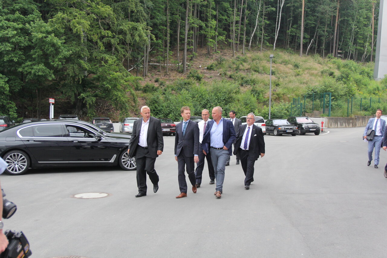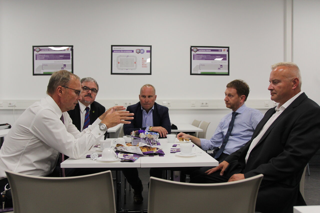 Der sächsische Ministerpräsident Michael Kretschmer schaute heute im Erzgebirgsstadion vorbei. Am Nachmittag hielt er und Präsident Helge Leonhardt ein Grußwort bei der Vollversammlung des der Nord-Ostdeutschen Textil- und Bekleidungsindustrie e.V., welche in der Wernesgrüner VIP-Lounge des Erzgebirgsstadion stattfand.