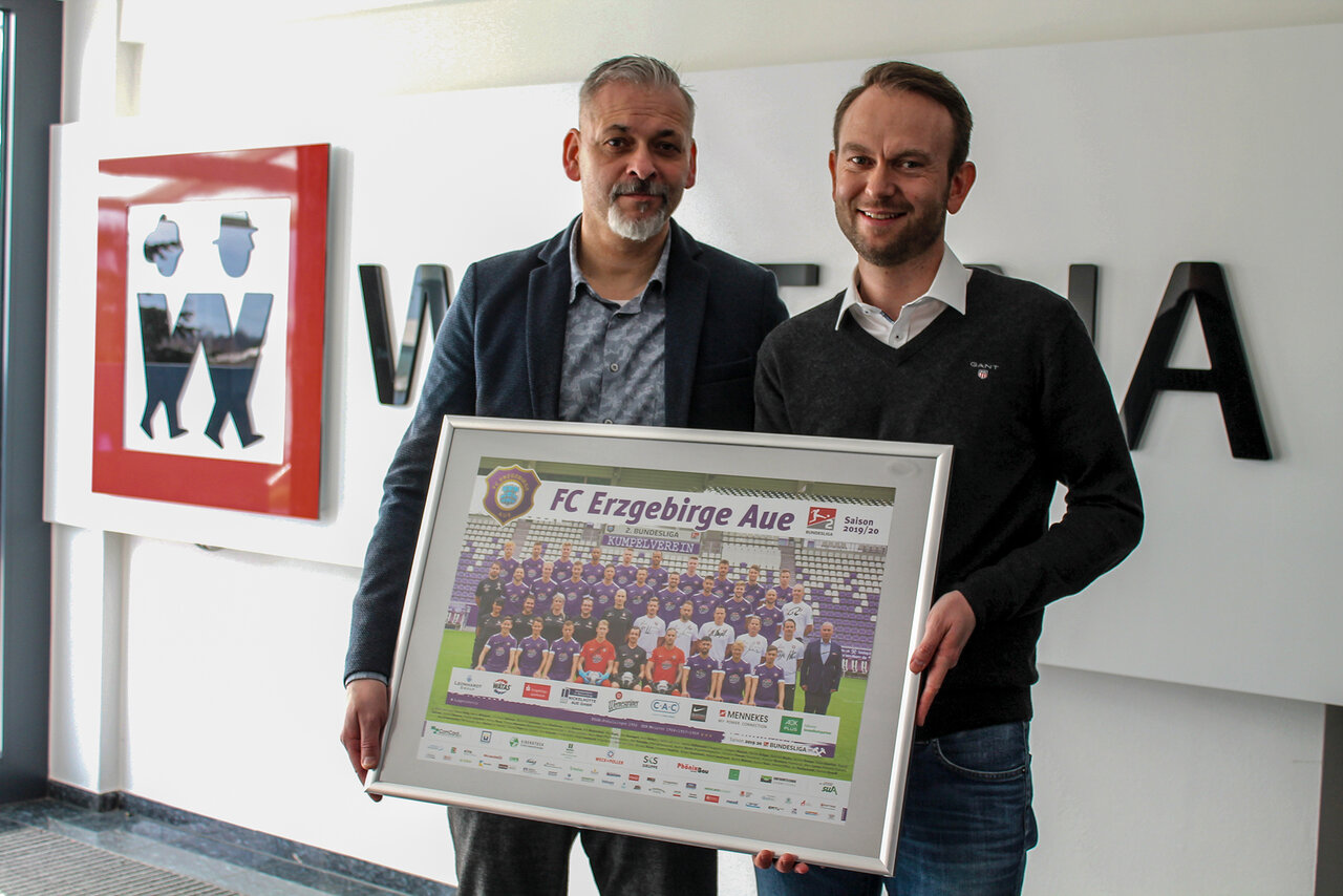 Seit mehr als zehn Jahren unterstützt das sächsische Textilunternehmen Wattana die Auer Veilchen. Am 16. Oktober vereinbarten Geschäftsführerin Gabriele Götze und FCE-Marketingleiter Enrico Barth die Verlängerung des Co-Sponsorings für weitere zwei Jahre. Zusammen mit dem stellvertretenden Geschäftsführer Alexander Gerber und Vertriebsleiter Thomas Wild informierte sie sich bei einer Führung durchs neue Erzgebirgsstadion über die Situation im Kumpelverein und die besonderen Herausforderungen unter Corona-Bedingungen.