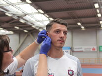 Zum Beginn einer jeden Vorbereitung gehört der obligatorische Laktattest. Das Trainerteam bat gestern um 09:00 Uhr die 1. Gruppe zum Leistungstest im Olympiastützpunkt Chemnitz. Zuerst erfolgte der Gang auf die Waage, dann wurden Brustgurte angelegt. Als der erste Pieks überstanden war, ging es auf die Laufbahn, wo die Profis ihre Runden in verschiedenen Intensitäten drehten. Nach jeder Stufe kam es erneut zu einer Abnahme eines Tropfens Blut. Anschließend wurde der Lauf wieder aufgenommen, dieses Mal aber mit höherer Geschwindigkeit.