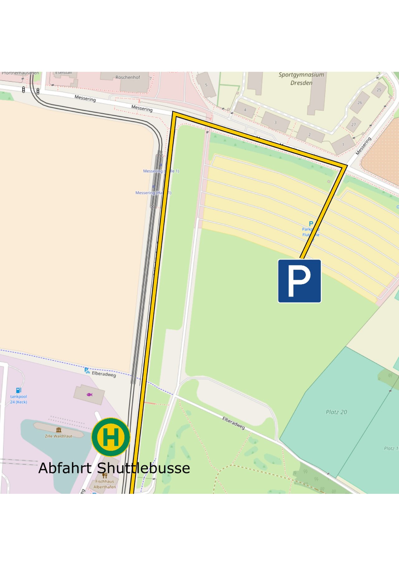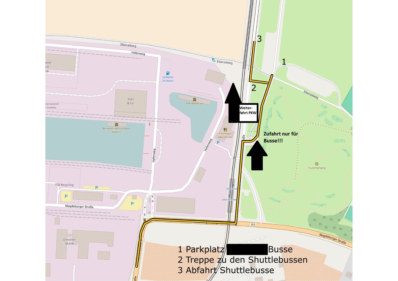 Die Fahrzeugführer werden gebeten, auf der A4 bis zur Anschlussstelle Dresden-Altstadt (Autobahnabfahrt 78) und anschließend auf der B6 bis zum vorgesehenen Parkplatz zu fahren. Von einem Abweichen der Fahrtstrecke zum Gästeparkplatz wird zu Ihrer eigenen Sicherheit abgeraten.