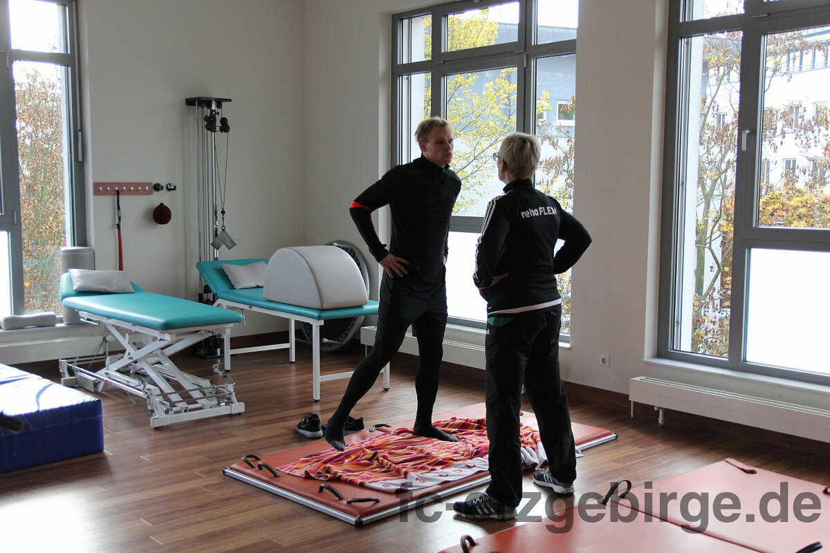 Im April zog sich Sören Bertram noch im Trikot des Halleschen FC einen Kreuzbandriss im linken Knie zu. Nach der OP begann ein langer Weg der Genesung. Seit Juni wechselten sich Krankengymnastik, Sporttherapie, Übungen im Bewegungsbecken und Einheiten in der physikalischen Abteilung ab. Im Moment befindet sich Sören im Aufbautraining, tankt Kraft und feilt an der Ausdauer. Die nächste Woche wird wahrscheinlich seine letzte in der Saline Rehabilitationsklinik in Halle sein. Der 25-Jährige hat seine Wohnung bereits aufgegeben und hofft, nach bestandenen Abschlusstest, ab dem 08.11.2016 sein Aufbautraining in Aue fortsetzen zu können. Wir haben Sören in Halle besucht und ihn mit Kamera an einem Reha-Tag begleitet: