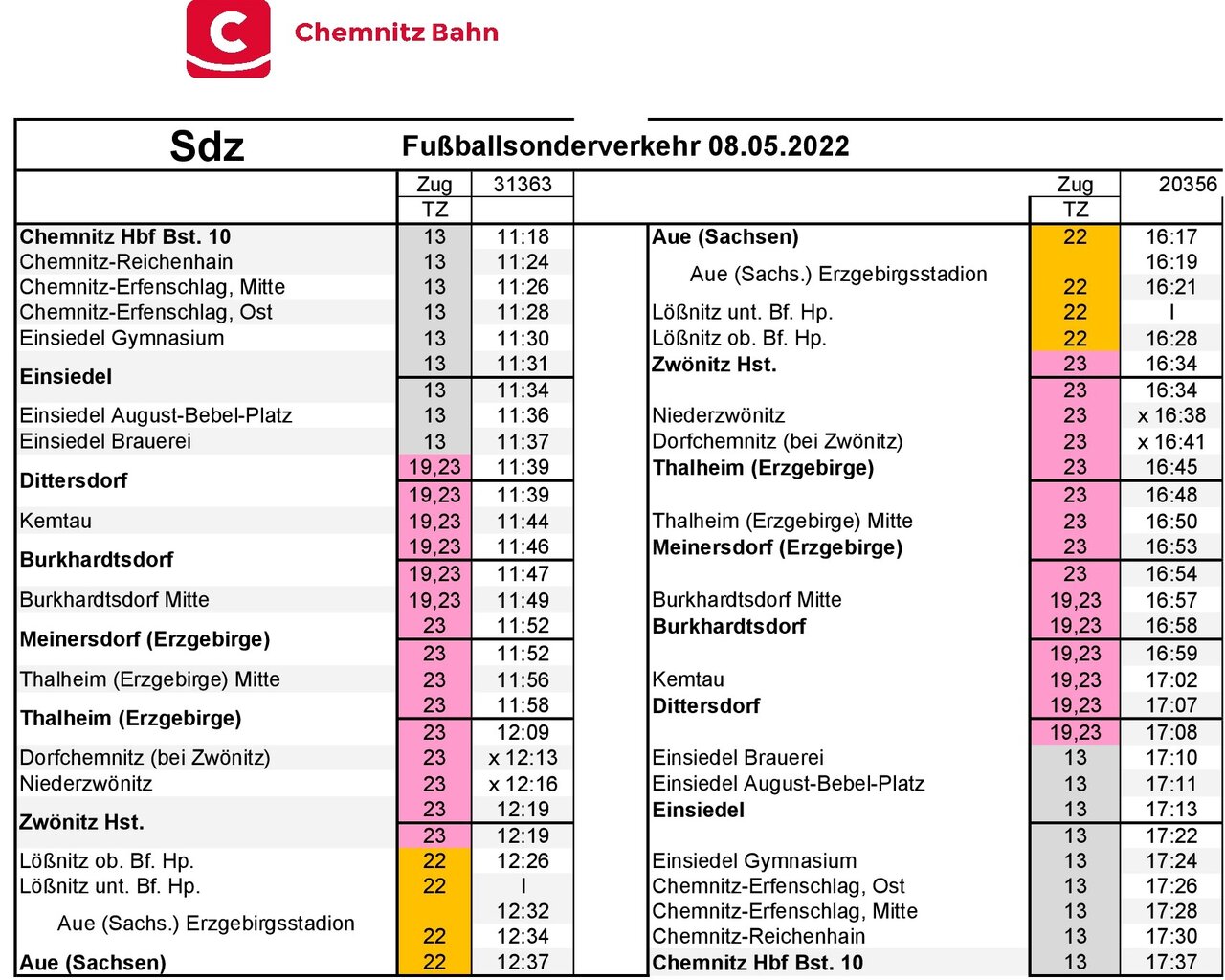 - Gästefans mit Zuganreise können ab Bahnhof Aue einen Bus-Shuttle nutzen