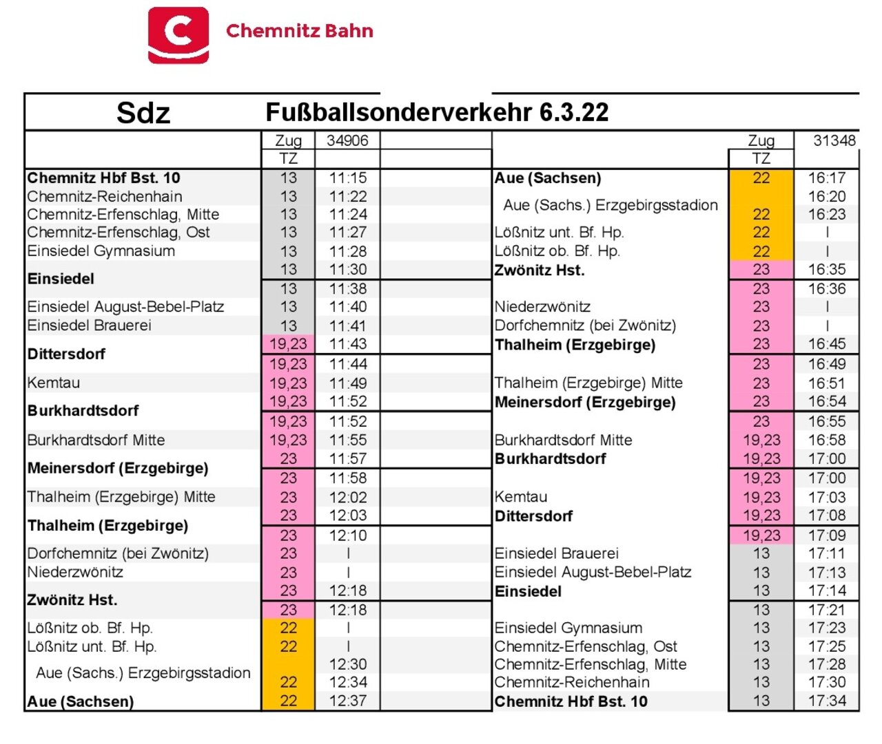Es wird über die regulären Verbindungen hinaus eine Sonderleistung der Chemnitzer City-Bahn geben: