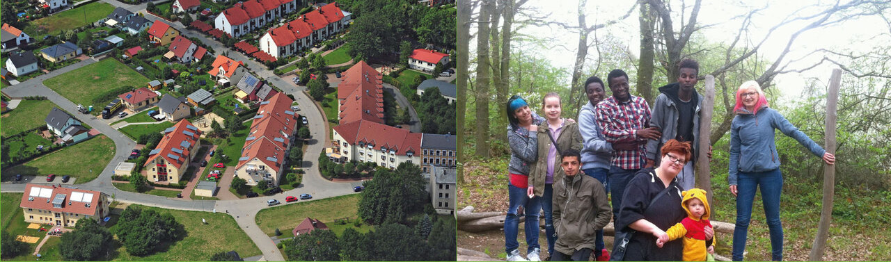 Fotos: AWO (2): Mitten im Grün befinden sich die Wohnhäuser der AWO, wo Jugendliche ein schönes Zuhause gefunden haben (links). Sehr engagiert ist der Kreisverband Auerbach/Vogtland e. V. auch in der Flüchtlingshilfe (Bild rechts). Die hiesige Arbeiterwohlfahrt betreibt Einrichtungen in Auerbach, Rodewisch und Treuen. Neben den Wohnprojekten gibt es unter anderem Jugendklubs, Stationen der ambulanten und stationären Pflege für Senioren sowie eine AWO-Küche mit Bistro. Für die sozialen Aufgaben wirken hier 450 Mitarbeiter sowie zahlreiche ehrenamtliche Helfer. News-Foto: Sven Sonntag - PicturePoint
