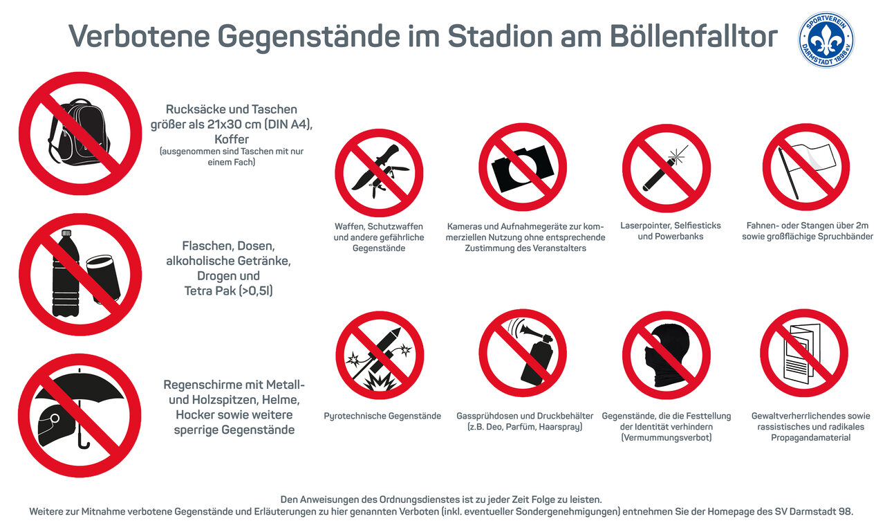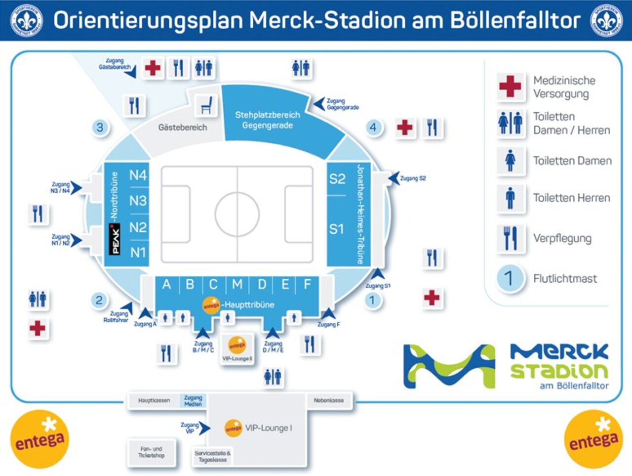 Siehe hierzu zudem die Stadionordnung und Gefahrenabwehrverordnung für das Merck-Stadion am Böllenfalltor.