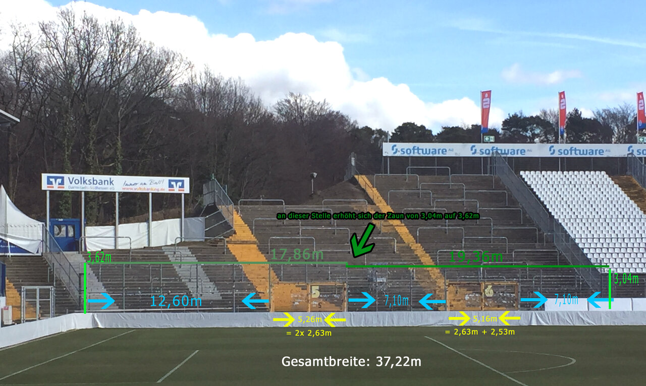 -Bitte beachtet zudem, dass das Besteigen der Zäune und Betreten des Innenraums verboten ist.Stadionverbotsbereiche: