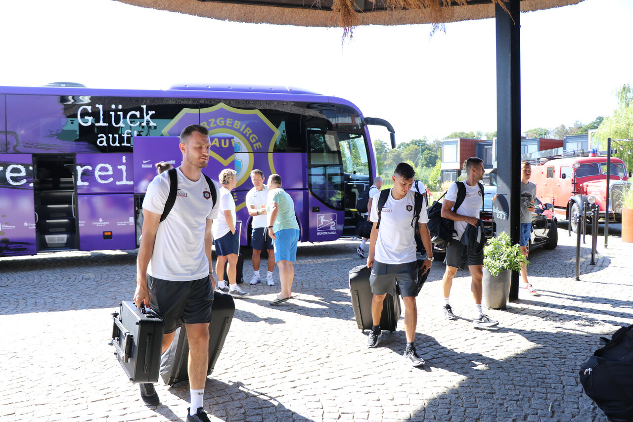 Pünktlich 8:30 Uhr machte sich der Veilchenbus in Richtung Polen auf, wo der FC Erzgebirge Aue ein einwöchiges Trainingslager in Opalenica durchführt. Mit an Bord waren mit Torhüter Philipp Klewin und Mittelfeldspieler Ognjen Gnjatic auch zwei Neuzugänge.