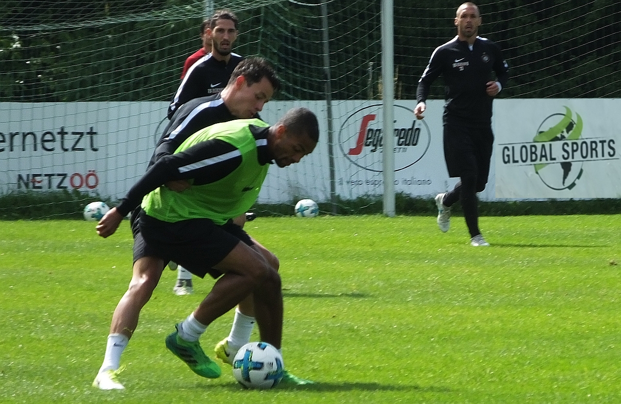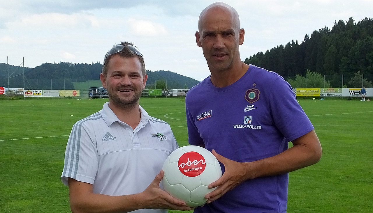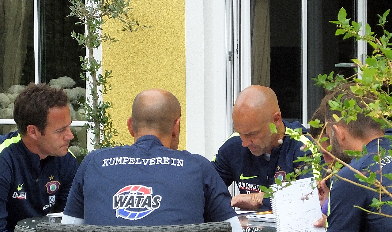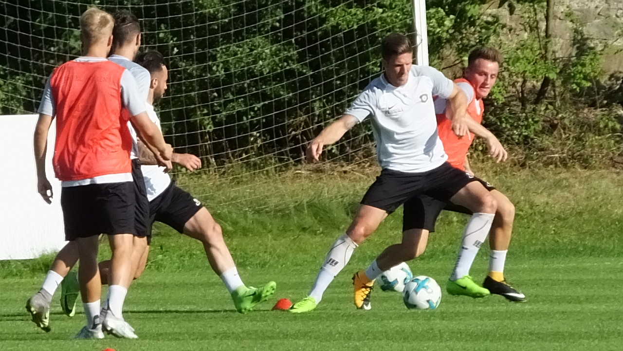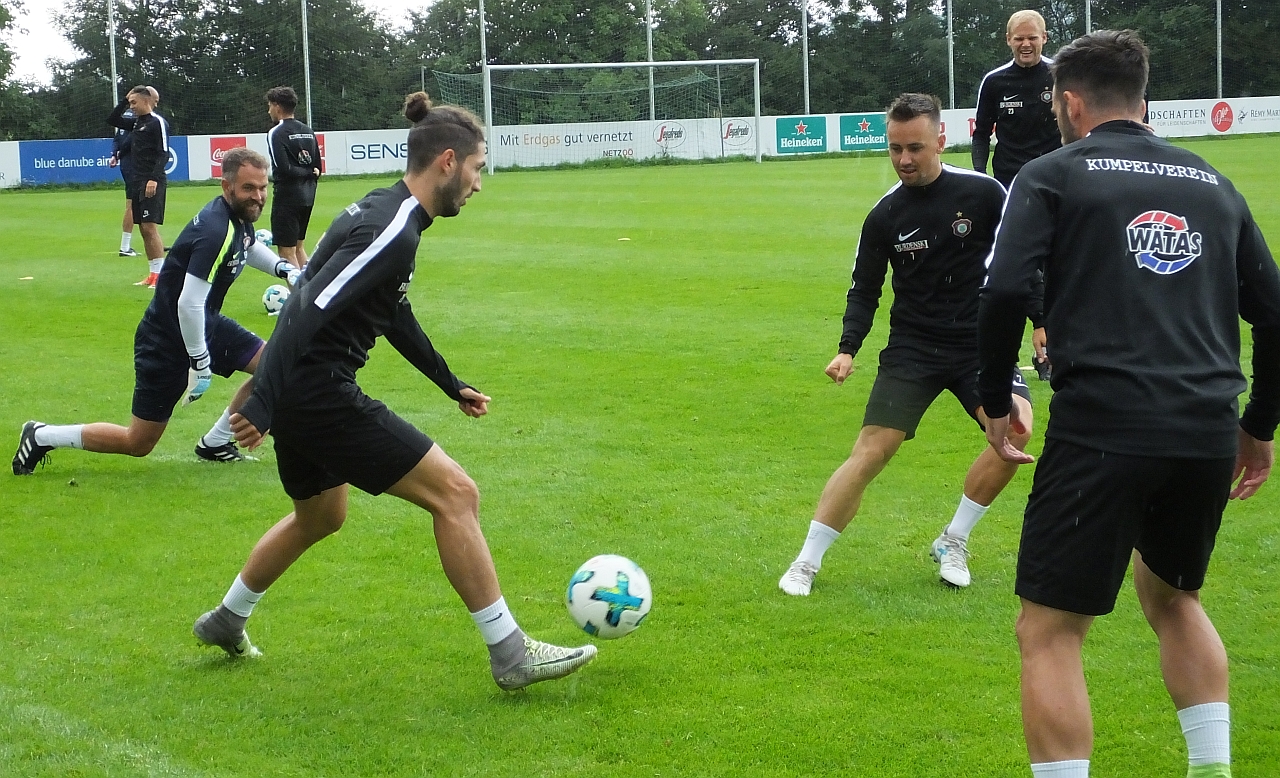 Vor Trainingsbeginn übergibt unser Chefcoach Thomas Letsch zunächst an Präsident Helge Leonhardt, der unserer Mannschaft für die bisherige Vorbereitung und den Fleiß hier im VeilchenCamp FELDKIRCHEN 2017 dankt.
