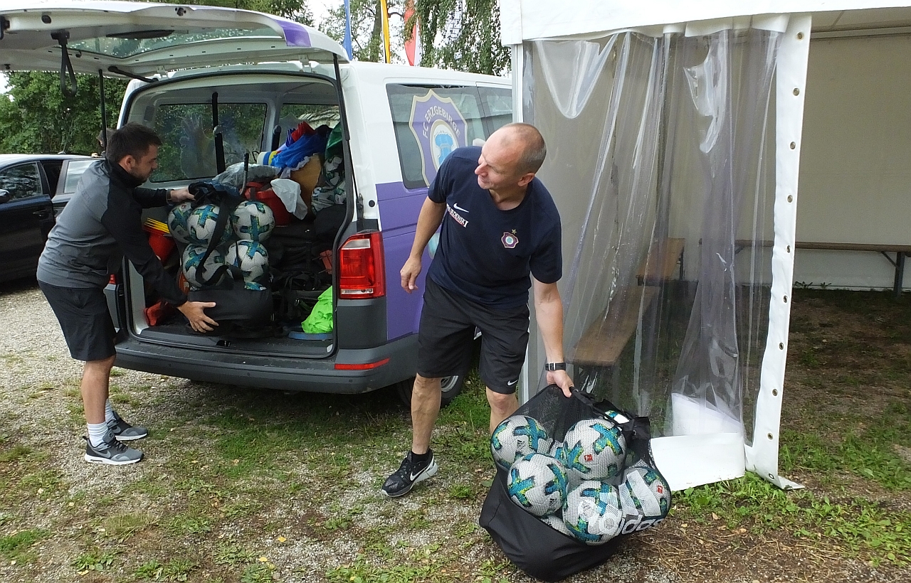Schloss Mühldorf am Samstagmorgen - im VeilchenCamp FELDKIRCHEN 2017 brechen die letzten Stunden an. Noch vor der ersten Trainingseinheit startet der von unserem Sponsor WECK+POLLER zur Verfügung gestellte Transporter mit einer ersten Ladung Trainingsutensilien in Richtung Erzgebirge.