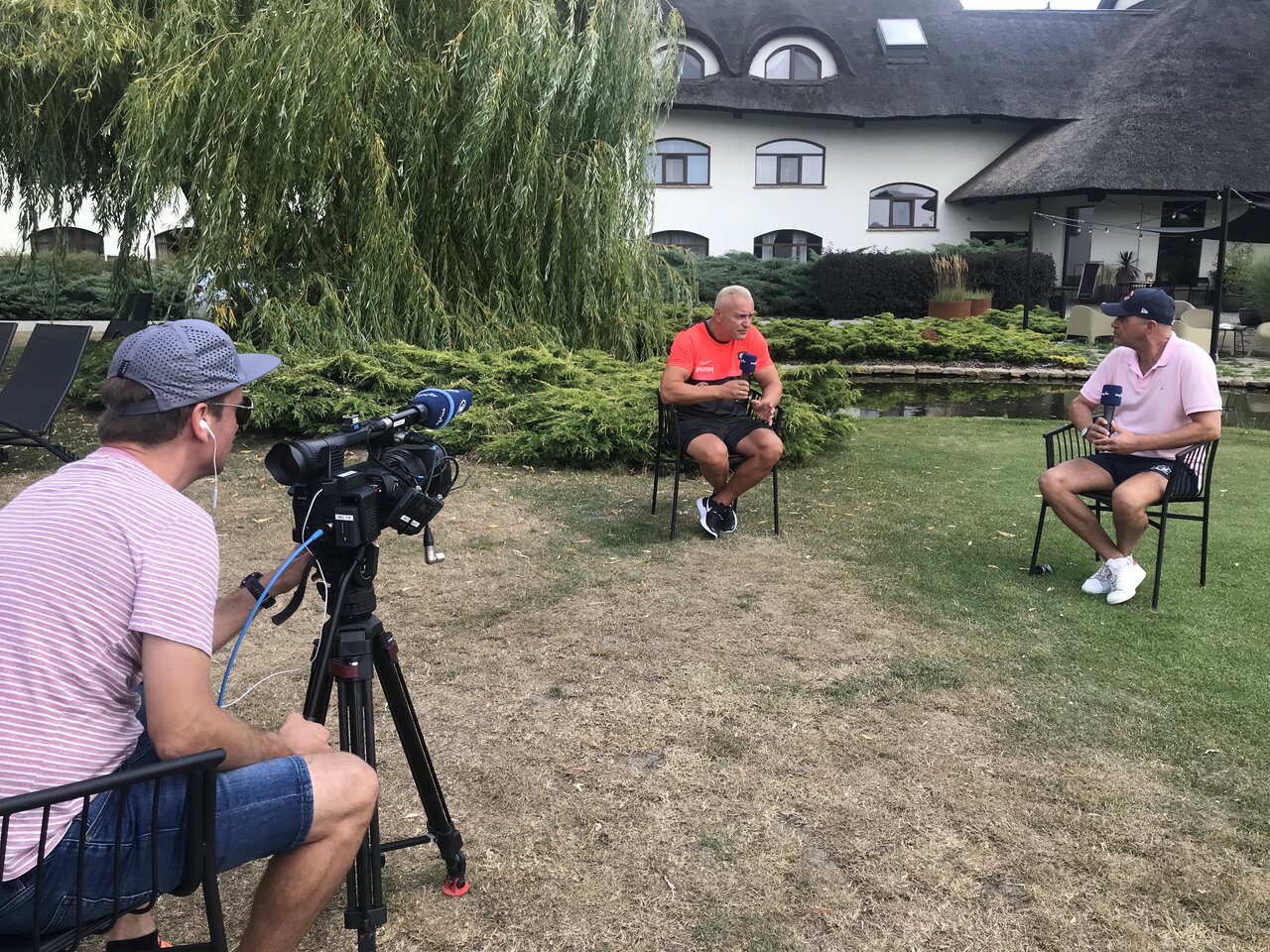 Nach dem Mittagessen waren unser Cheftrainer Dirk Schuster und Geschäftsführer Michael Voigt Gäste beim MDR-Livestream, der direkt vor dem Hotel aufgezeichnet wurde.