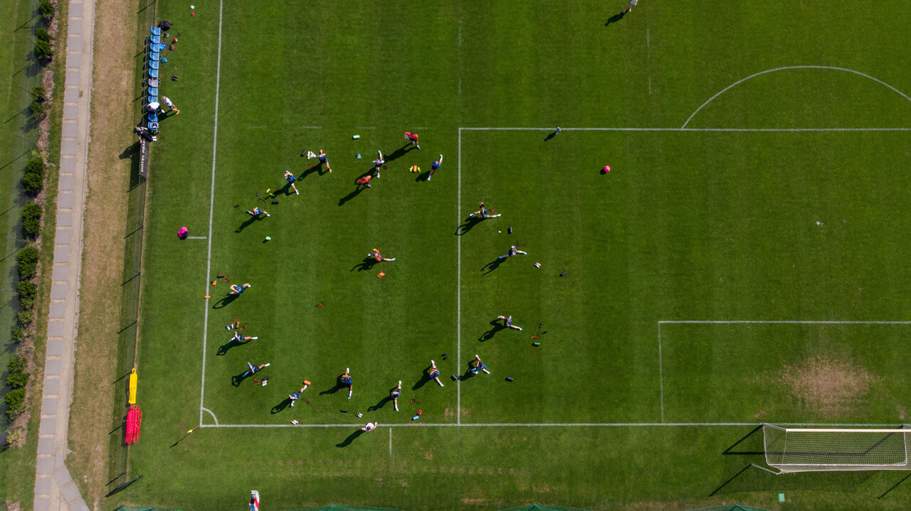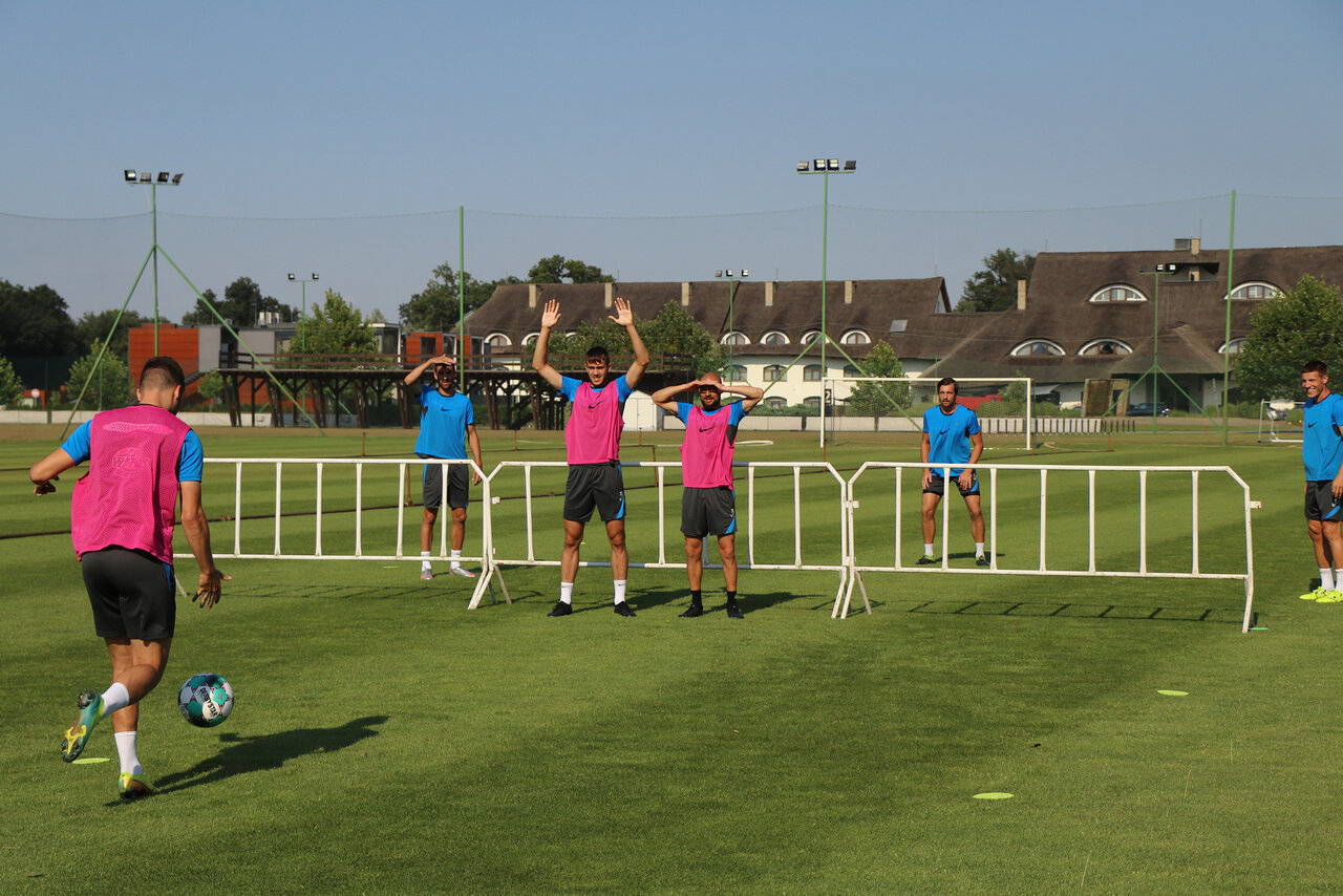 Das Vormittagstraining stand ganz im Zeichen der Regeneration nach dem Tespiel gegen Kickers Offenbach. Den Anfang des Trainings bestimmte die Blackroll und das Deuserband. Für den Abschluss hatte Fitnesstrainer Marco Kämpfe noch einen Laufparcours abgesteckt, den unsere Spieler mit und ohne Ball druchlaufen mussten.
