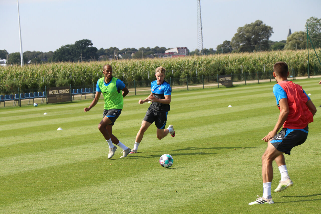 Die restliche Zeit des Vormittagstraining stand dann wieder der Ball im Mitelpunkt. Die Trainer verkürzten das Spielfeld auf die Hälfte und es wurde 7 gegen 7 mit Dimitrij Nazarov als Joker gespielt.