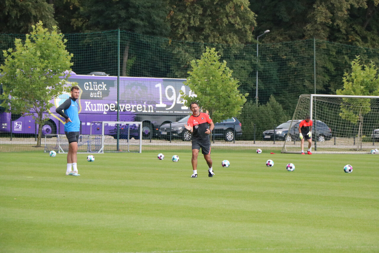 Danach wurden Spielformen einstudiert. Cheftrainer Dirk Schuster gab die Anweisungen:
