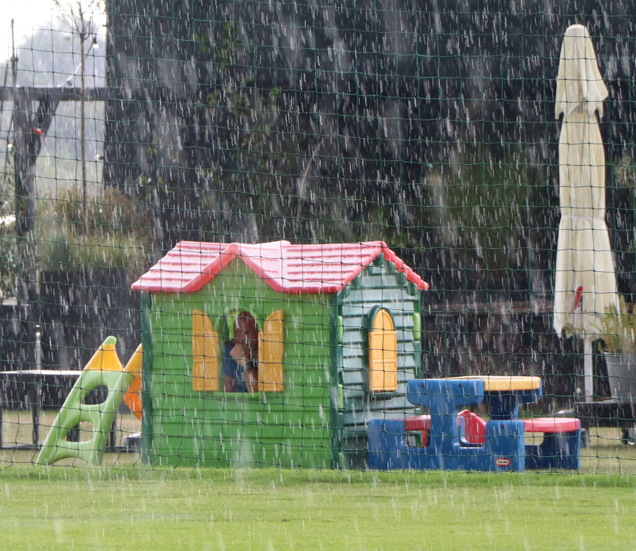 Der Regen wurde so heftig, dass das Training für eine Viertelstunde unterbrochen werden musste.