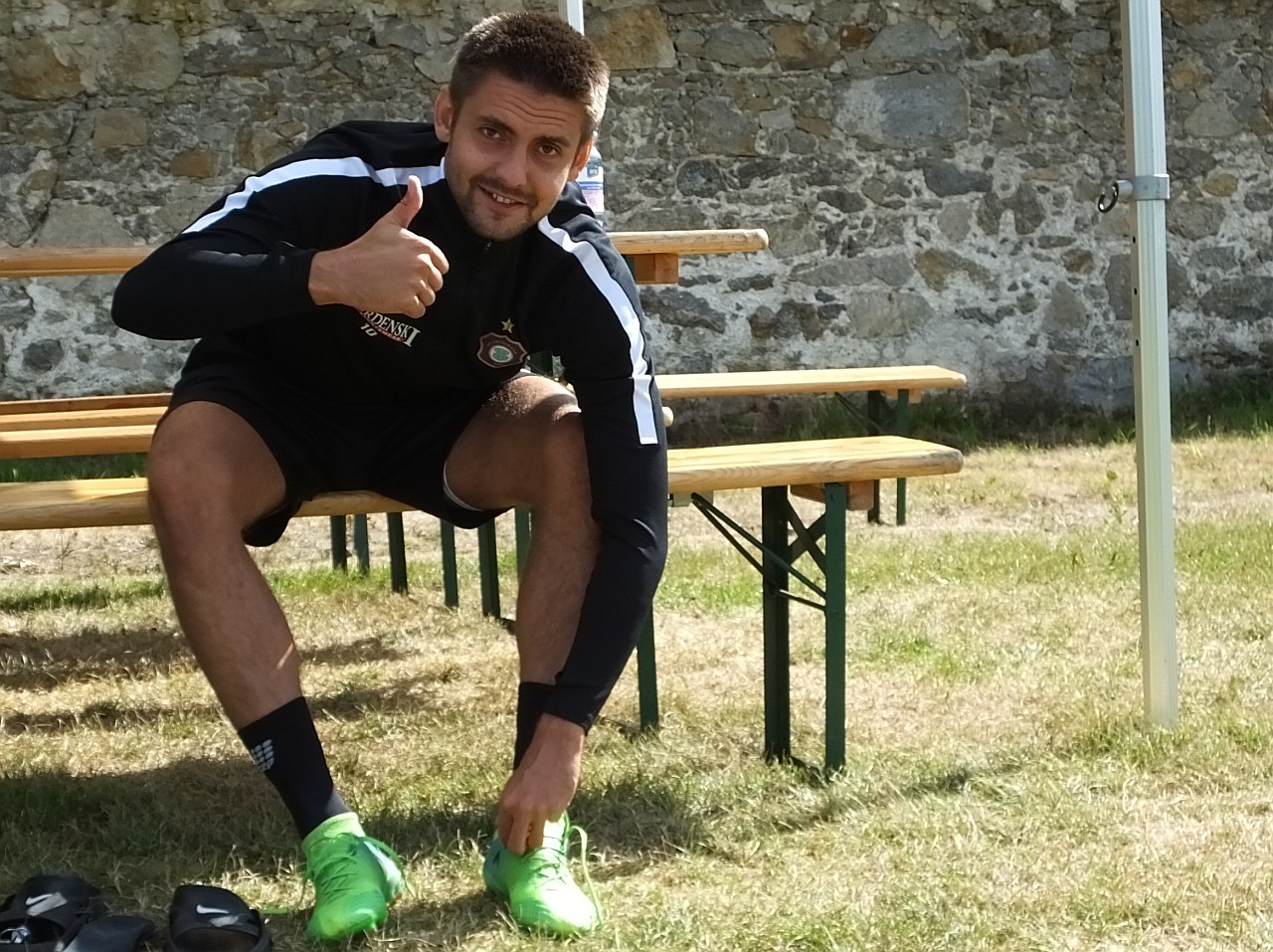 Daumen hoch! Dimitrij Nazarov schnürt die Töppen und kann wieder mit der Mannschaft trainieren.