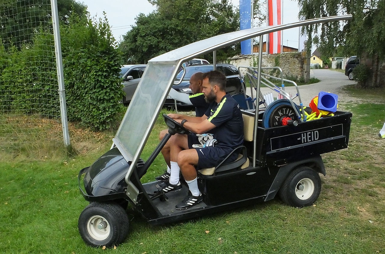 Auf geht's! Max Urwanschtky und Werner Schoupa machen sich mit den Trainingsgeräten auf den Weg.