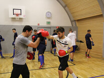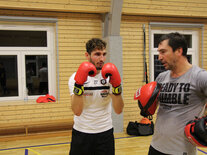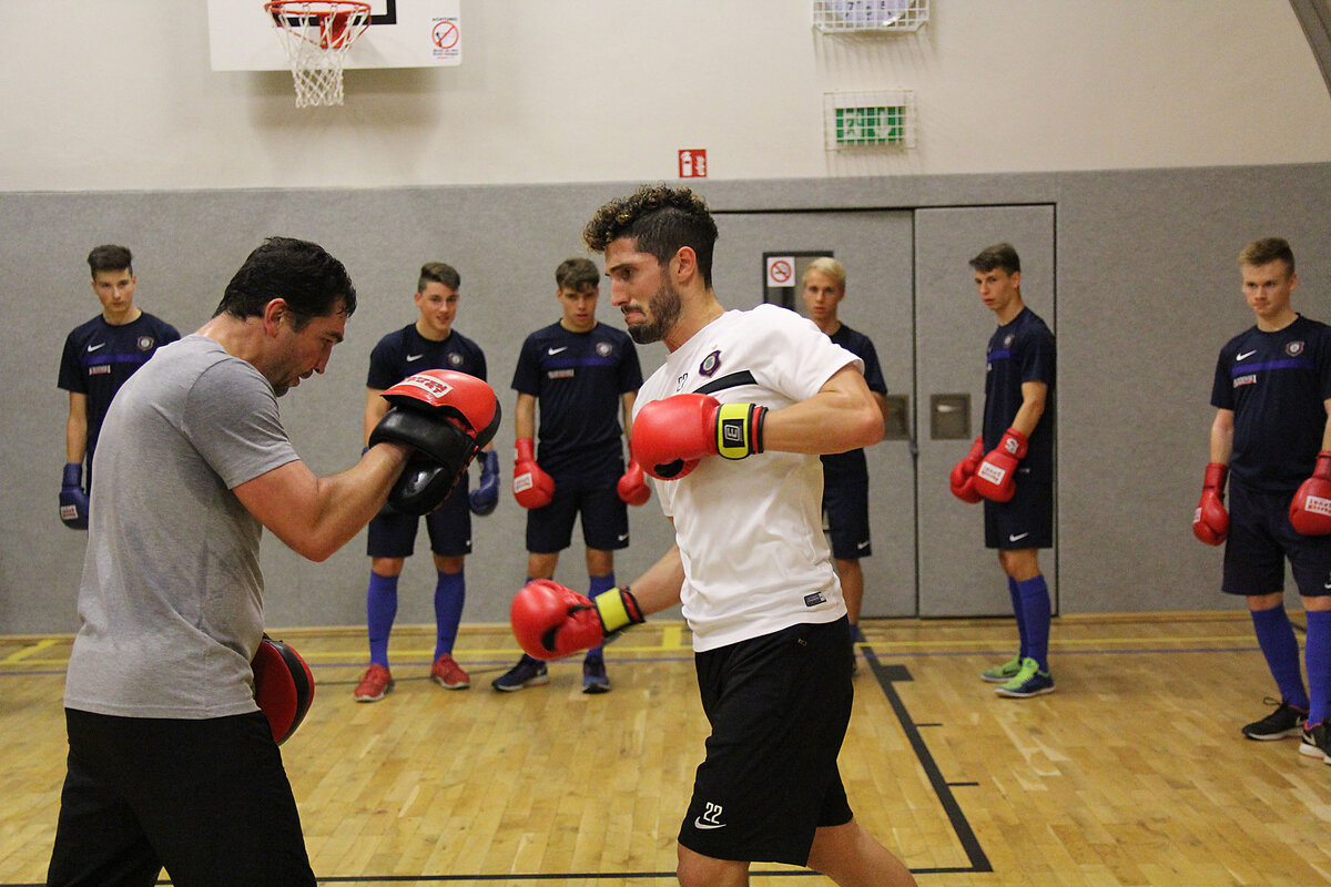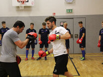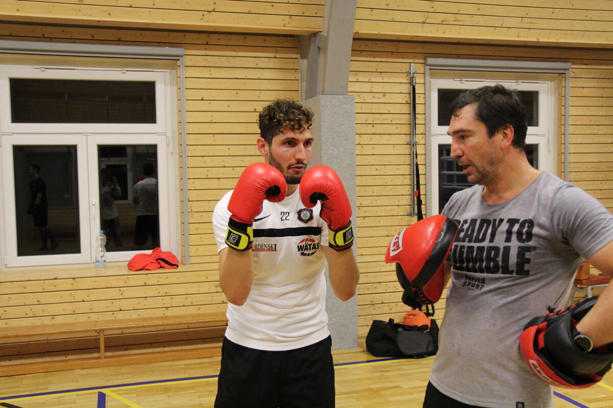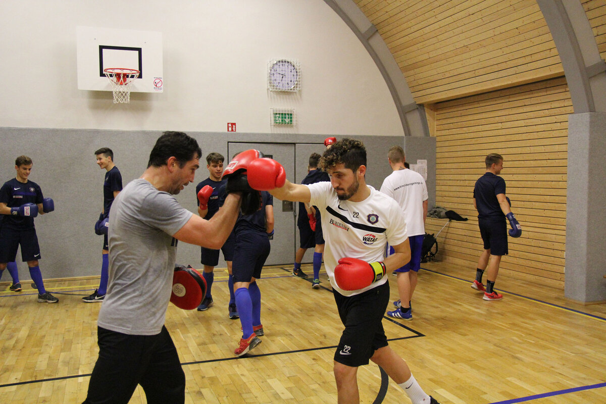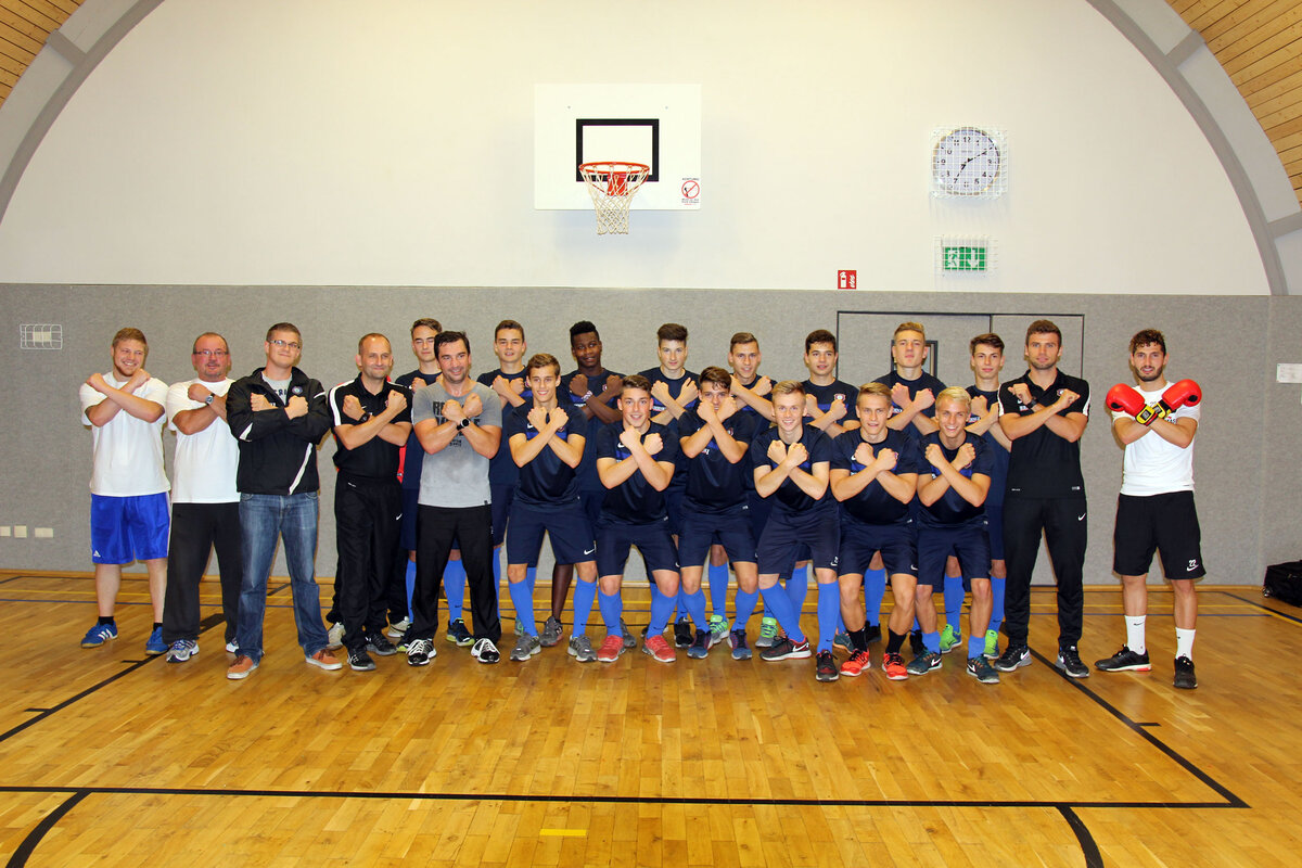 Fitness, schnelles Reagieren und Krafttanken standen für das Auer U-19-Team am 18. Oktober auf dem Plan. Nicht nur Fabio Kaufmann, der in seiner Freizeit boxt, freute sich über das Extratraining mit Markus Beyer. Auch für die A-Junioren war es ein ganz besonderes Erlebnis, vom dreifachen WBC-Weltmeister und Olympiateilnehmer unterrichtet zu werden, der übrigens ein heißer Veilchenfan ist
