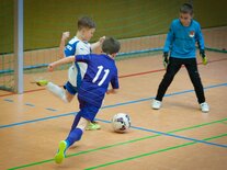Mit einem 1. und einem 2. Platz endete das Wochenende für unsere jungen Veilchen wieder einmal sehr erfolgreich. Beim Turnier am Samstag in Riesa stand am Ende ein starker 2. Platz. In der Vorrunde erspielte sich unser Team nach 2 Siegen gegen Lok Leipzig (2:1) und Stahl Riesa (4:1) und einem Unentschieden gegen Dresden-Striesen (2:2) den 1. Platz in der Gruppe. Dort trafen unsere Jungs in der Goldgruppe gemeinsam mit Lok Leipzig, auf die beiden Erstplatzierten der anderen Gruppe (RB Leipzig und BFC Dynamo). Die Hauptstädter wurden klar und verdient mit 4:0 geschlagen. Im zweiten Aufeinandertreffen gegen die Jungs von Lok Leipzig drehten die Messestädter diesmal den Spieß um und wir verloren mit 0:3. Davon nochmals wachgerüttelt, wurden im Spiel gegen RB Leipzig nochmal alle Kräfte gebündelt und das Team gewann mit 1:0 und sicherte sich somit einen sehr guten 2. Platz. Am Sonntag stand dann das Turnier in Zschopau auf dem Programm. Die Aufgaben waren hier komplett anders, als tags zuvor in Riesa. Gegen sehr defensiv eingestellte Teams und auf kleinere Handballtore lag der Schwerpunkt darauf, das Tempo mit Ball hoch zu halten und Lösungen zu finden. Dies bewältigten die Jungs auf eine tolle Art und Weise und zeigten für diese Altersklasse eine sehr schöne Spielanlage. So wurde über 5 Spiele hinweg kein einziges Tor zugelassen und wenn auch im letzten Spiel gegen Annaberg kein eigenes Tor gelingen wollte, so gewannen unsere jungen Veilchen das Turnier absolut verdient mit 17:0 Toren.