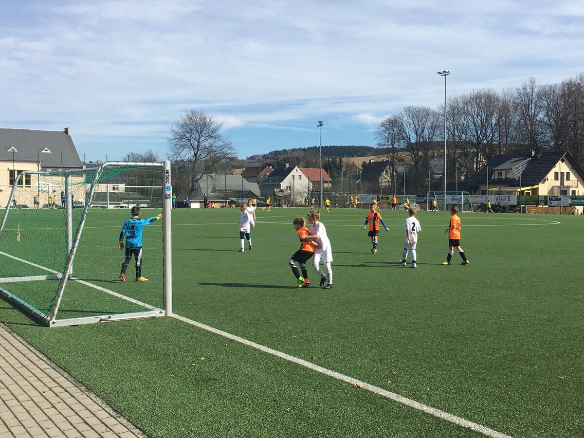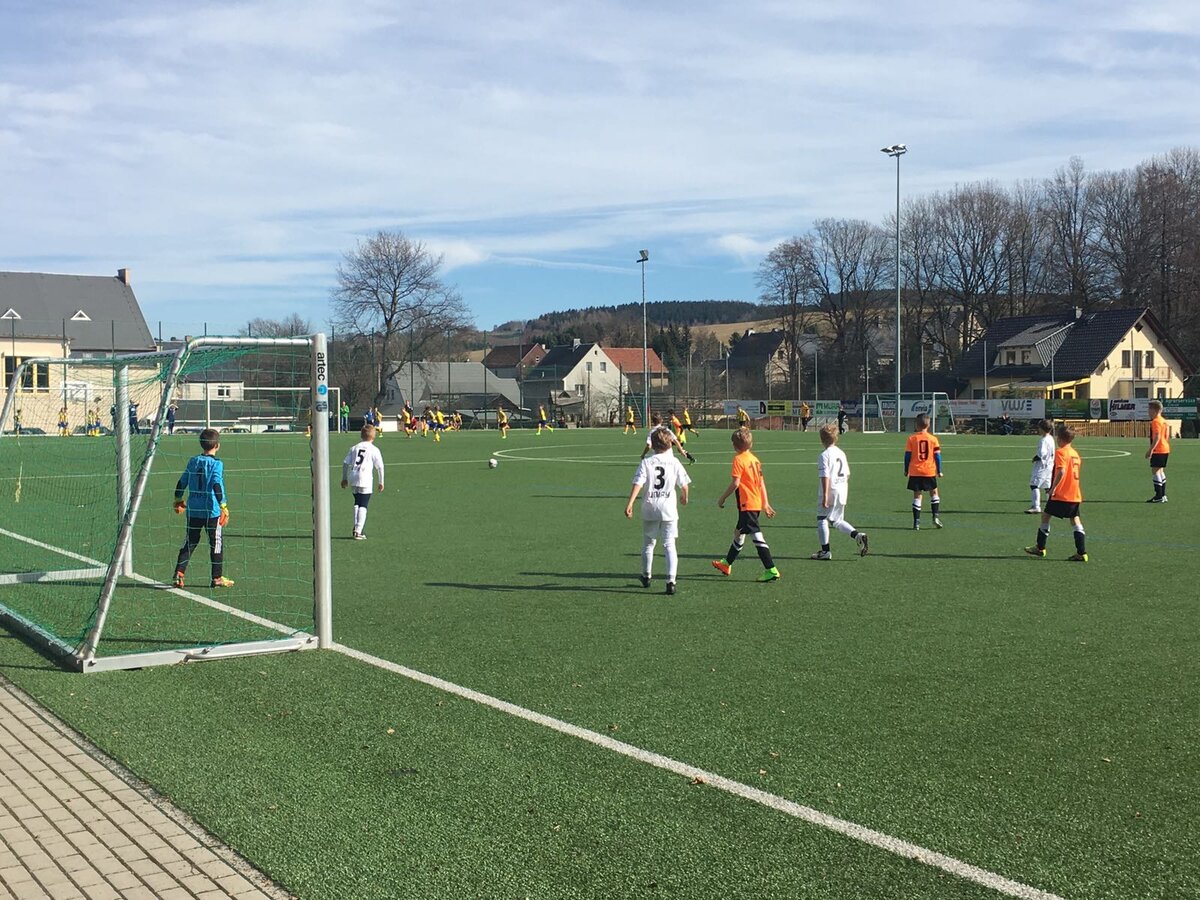 Am Samstag hatte unsere U10 ihren ersten Härtetest im Freien.Der Leistungsvergleich im Stollberger OT Mitteldorf fand unter besten Bedingungen, bei super Wetter und ca. 150 Zuschauern statt.Die Mannschaften des CFC, VFB Chemnitz, VFB Auerbach und CZ Jena sind unserer Einladung dankend gefolgt.Unser erster Gegner war der CFC, der an diesen Tag einen Tick besser war. Vielleicht lag es daran, dass die kleinen Veilchen den "Hallenmodus" noch nicht abgestellt hatten Am Ende hieß es in einem rasantem Spiel 3:1 für unsere Gäste.Gegen den nächsten Chemnitzer Vertreter dem VFB spielten unsere Jungs souveräner und gewannen verdient mit 2:0.Im 3. Spiel kam es zum Aufeinandertreffen mit unseren Gästen aus dem Vogtland. Das Ergebniss viel mit einem 4:1 Erfolg für unsere jungen Veilchen deutlich aus, täuscht aber über den eigentlichen Spielverlauf hinweg, da auch das Auerbacher Team klare Chancen zum Torerfolg hatten, diese aber nicht nutzen konnten. Im letzten Spiel gegen den FC Carl Zeiss Jena merkte man den kleinen Veilchen die vorherigen 66 Minuten Spielzeit deutlich an. Mit einem leistungsgerechten 1:1 Unentschieden ging dieser Leistungsvergleich zu Ende. Alles in allem eine gelungene Veranstaltung, wo wir uns noch einmal auf diesem Wege beim FSV Mitteldorf für die Gastfreundlichkeit bedanken möchten.