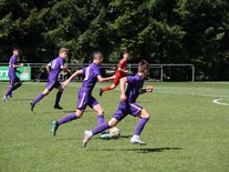 Am Sonntag trafen unsere jungen Veilchen der U15 auf den FSV Zwickau in der Landesliga Sachsen. Die Gäste bewiesen in der Rückrunde, dass sie vor allem gegen die Teams aus der oberen Tabellenhälfte mithalten können. Somit wussten wir, dass es ein harter Kampf mit viel Arbeit werden würde. Unsere U15 startete mit viel Schwung in die Partie und beschäftigte die Gäste in deren Hälfte. Ohne die Masse an hochprozentigen Torchancen, agierten unsere Jungs sehr dominant und ließen defensiv wenig zu. Dennoch erwies sich das Umschaltspiel der Zwickauer immer wieder als gefährlich und somit galt es die Konzentration oben zu halten. Die beste Chance der ersten Halbzeit hatte unser Kapitän Florian Martin, welcher den Gästekeeper mittels Volleyschuss zu einer Parade zwang. Mit einem torlosen Remis ging es in die Halbzeit. Klare Vorgabe für den zweiten Abschnitt war es noch eine Schippe oben drauf zu packen, um das erste Tor der Partie zu erzwingen. Dieses gelang dann auch in der 41. Minute, als sich Dennis Omerovic über die linke Seite schön durchtankte und Florian Martin am Elfmeterpunkt mustergültig bediente. Dieser versenkte das Leder unhaltbar im rechten Knick. Im Anschluss ließen unsere Jungs einige 100%ige Chancen liegen. Durch einen individuellen Fehler der Zwickauer, konnte Toni Gaschler in der 61. Minute das erlösende 2-0 erzielen. Dieses Ergebnis stellte gleichzeitig den Endstand dar. Am Mittwoch geht es für unsere U15 schon weiter. Um 17.30 Uhr empfängt man die U14 des Chemnitzer FC. Ein Sieg ist das Ziel und soll die Ambitionen des Teams untermauern. Am kommenden Sonntag geht es dann in die Messestadt, wo die U15 von Rotation Leipzig wartet.