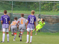 Nun hieß es im direkten Duell Stürmer gegen Torhüter. Der Spieler läuft an, schießt halbhoch in die rechte Ecke, doch der Keeper unserer jungen Veilchen ist da und kann den Ball parieren. Kurz danach ertönte der Schlusspfiff. Die Freude über den Erfolg war groß und die „Hämmer“ vor den Eltern und Fans unserer jungen Veilchen, bildeten im Anschluss den würdigen Abschluss eines bis zum Spielende spannenden Wettkamps.