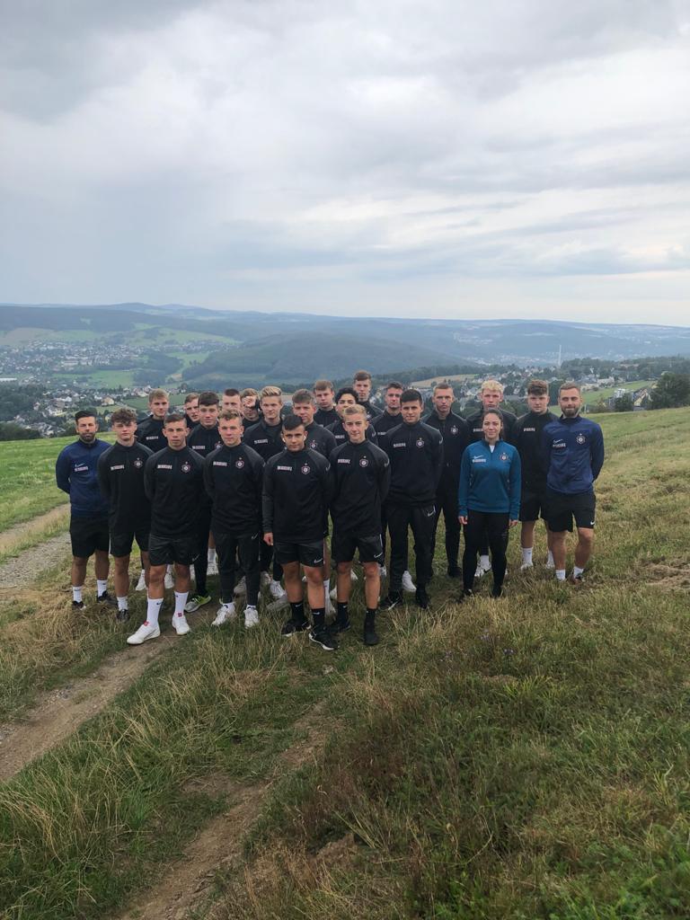Da das Spiel kurzfristig nach Beierfeld verlegt wurde, nutzten Spieler- und Trainerteam die Möglichkeit, Kraft vom Balkon des Erzgebirges zu tanken.