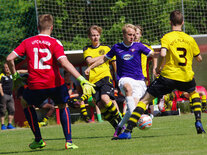 Am 25. Spieltag begab sich unsere U19 Mannschaft zum Auswärtsspiel nach Plauen. Sportlicher Gegner war das Team vom VFC Plauen. Wenn der aktuell auf Tabellenplatz 3 liegendem Gastgeber auf den Tabellenführer trifft, kann man wohl von einem „Spitzenspiel“ der Liga sprechen. Leider konnten die positiven Erwartungen an den Wettkampf nur selten erfüllt werden. Dies lag nicht am leidenschaftlichen und engagierten Spiel der Plauener, sondern vielmehr am weniger guten Spiel unseres Veilchenteams am heutigen Tag. In den ersten Minuten neutralisierten sich beide Mannschaften, daher waren auf beiden Seiten keine zwingenden Chancen zu verzeichnen. Mit dem ersten schnell und konstruktiv vorgetragenen Angriff unserer Veilchen wurde die Abwehr der Plauener Mannschaft ausgespielt und Vincent vollendete den gut vorbereiteten Spielzug mit dem Tor zur 1:0 Führung für unsere Farben. Im weiteren Spielverlauf verzeichneten unsere jungen Veilchen ein Plus an Ballbesitz, ohne sich dabei zwingende Torchancen zu erspielen. Immer wieder schlichen sich Ungenauigkeiten im Passspiel ein und frei werdende Räume im Rücken des Gastgebers wurden nicht konsequent bespielt. Das Team aus Plauen spielte weiter diszipliniert gegen den Ball und hatte nach Standartsituationen und Zuordnungsfehlern im Abwehrbereich der Veilchen, Möglichkeiten zum Torerfolg zu kommen. Mit der knappen Führung im Rücken wurden die Seiten gewechselt. Aber auch zu Beginn der zweiten Halbzeit sollte sich am Spielgeschehen nicht wirklich viel ändern. Unserem Team fehlte die Sicherheit im eigenen Spiel, während der Gastgeber weiterhin ein leidenschaftliches Spiel ablieferte. Lohn der Plauener Mühen war in der 55. Minute der umjubelte Ausgleichstreffer. Unsere Veilchen nahmen nun das Spiel besser an und versuchten ihre eigenen Angriffsbemühungen zielstrebiger und konsequenter auszuspielen, ohne dabei die Abwehrarbeit zu vernachlässigen. In der 74. Minute konnte Vincent ein Flugball von Maximilian geschickt sichern, sich gegen seinen Gegenspieler durchsetzen und den Angriff überlegt zur erneuten Führung für unsere Veilchen abschließen. Da die Plauener Mannschaft weiter um den Ausgleich kämpften und unsere Jungs die sich nun bietenden Räume in der Abwehr der Gäste nicht konsequent bespielten, lebte das Spiel bis in die Schlussminuten von der Spannung. In der 89. Spielminute erzielte Florian mit einem Freistoß von der Strafraumgrenze den dritten Treffer für unsere Mannschaft und sorgte damit für die endgültige Entscheidung im Spiel. Auch wenn heute, die in dieser Saison schon oft gesehene Leichtigkeit und Spielfreude im Spiel unserer Veilchen fehlte, kann sich unser U19 Team trotzdem über 3:1 Sieg freuen, da man sich den sportlichen Erfolg gegen eine kampfstarke Mannschaft aus Plauen hart erarbeitet hat. Glückwunsch Jungs! Aufstellung: M. Schlosser; J. Günther; N. Hadaschik (ab 79. Min. N. Lukic); F. Stier; J. Grabs (ab 61. Min. M. Schöbel); V. Michl (ab 90. Min. M. Fügmann); S. Härtel; P. Wujewitsch; K. Walther; K. Karthein; L. Albert Fotos: Steffen Colditz, FCE