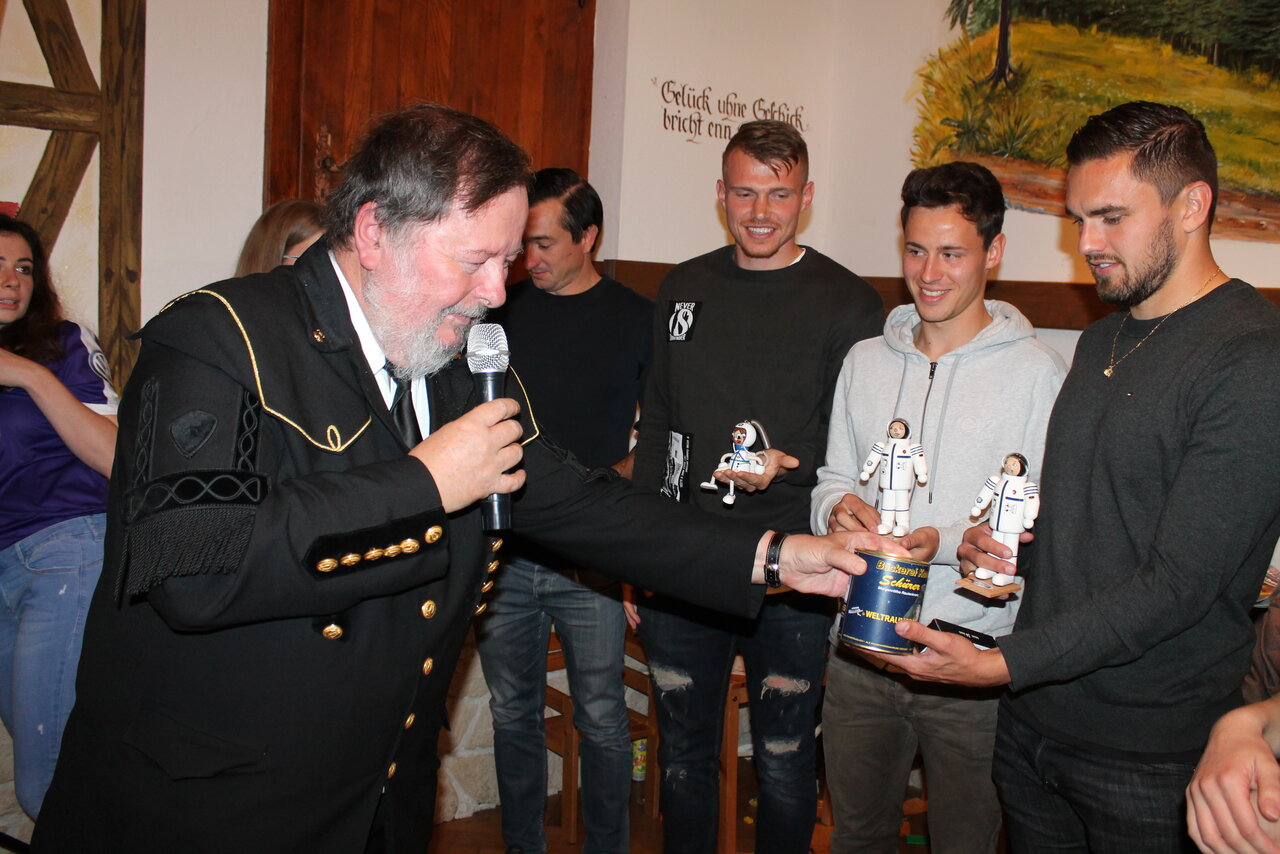 Zum Dank fürs Kommen spendierten die Gastgeber Trainer und Profis Kosmonauten-Raachermanneln und eine Weltraum-Büchsenkost, wie sie einst wohl schon Sigmund Jähn genossen hat.