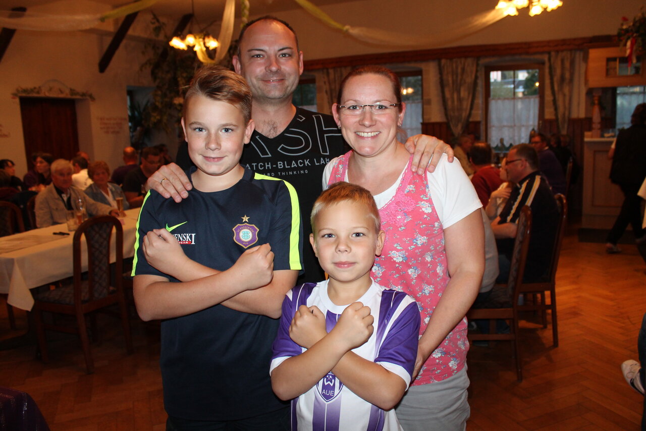 Matthias (12) und Jonathan (7) trainieren in den Herbstferien im Veilchen-Camp des FCE-Nachwuchsleistungszentrums. Mit Mama und Papa machen sie derzeit nämlich Urlaub im Vogtland, der alten Heimat ihrer Eltern. Dabei hat die Familie, die jetzt in Sehnde bei Hannover wohnt, auch das Heimspiel gegen Kiel besucht. Denn Franziska und Michael Ott (der einst für den VFC Plauen am Ball war), die aus Sachsengrund beziehungsweise Plauen stammen, bleiben den Veilchen auch in Niedersachsen treu. Klar, dass sie da auch den Fanstammtisch in Morgenröthe-Rautenkranz besuchten. Zu ihm hatte der Fanclub „Die Eiskalten Hämmer” (42 Mitglieder) für den 9. Oktober in die Gaststätte „Frischhütte” eingeladen.