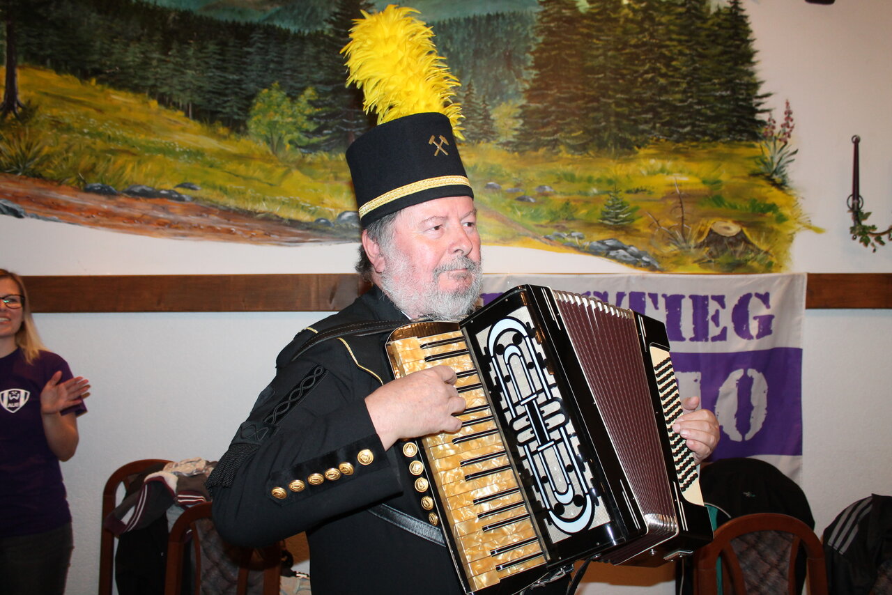 Dazu hatte Fanclub-Urgestein Konrad Stahl nicht nur seine Harmonika, sondern auch Enkel Milo, mit knapp zwei Lenzen einer der jüngsten im Club der „Eiskalten Hämmer”, mitgebracht.
