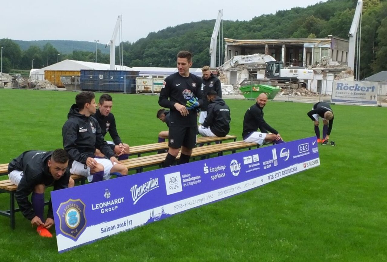 Natürlich haben wir diesmal unsere nagelneue Fantribüne in den Mittelpunkt gerückt, die zur offiziellen Saisoneröffnung am 30. Juli eingeweiht wird. Unser Teamfoto schoss in bewährter Zusammenarbeit der Zschorlauer Fotograf Gregor Lorenz. Nach dem Mannschaftsfoto ging es nebenan flott weiter mit den Einzelfotos. Hier sehen wir gerade Martin Männel.