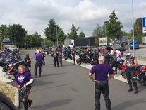 Bei bestem Wetter ging es zur 5. Veilchen-Biker Tour zum 2. mal mit den Bikes zu den „Eisernen“ nach Berlin. Sonntag, 5.August 2018 früh um 9 Uhr: über 50 Lila-Weiße Biker und 2 Begleitfahrzeuge machten sich auf die 280 km lange Strecke. Unterwegs schlossen sich über 10 weitere Motorräder an. Ab dem 2. Stopp in Freienhufen begleitete uns ein erster eiserner Trupp mit ca. 10 Bikern. Letzte Rast vor der Fahrt zum Stadion war an der Berliner Paradiesstraße. Eine Stärkung gab‘s mit Polnischer vom Leuthäuser Fleischer aus Hohndorf , dem Bauer Fleischer aus Albernau, Semmeln vom Schelli aus Aue und Mineralwasser vom Getränke Pausch aus Lauter. Hier stießen weitere 35 „Eiserne Biker“ dazu. Eine herzliche Begrüßung unter Fußball – und Bikerfreunden und dann ging es mit über 100 rot-weißen und lila-weißen Motorräder durch Köpenik an den vielen Berlin- und Aue Fans vorbei zur „Alten Försterei“. Beifall und Jubel beider Fanlager hinterließen Gänsehaut !! Die „Eiserne Biker“ spendierten, bei dann schon „erhöhten“ Temperaturen, noch kühle „Kaltschalen“ bei der Ankunft. Na ja, zum Spiel sei an der Stelle nichts weiter gesagt. Dank an unsere Veilchen-Biker-Teilnehmer für eine disziplinierte Fahrt, die alle das Ziel Alte Försterei auf zwei Rädern erreicht haben. Dank auch an die Profi-Blocker in den orangen Westen, die zur Sicherheit der Tour beigetragen haben, das Begleitteam, den helfenden Händen vom FCE und allen, die schon fleißig ihre Fotos und Videos von unserer Tour ins Netz gestellt haben. Glück Auf Stüb - Uwe Stübner und Mich - Michael Rüdiger im Namen des Vorstandes des Förderkreises und des FC Erzgebirge Aue e.V. Text, Fotos & Video: Veilchen-Biker Privates Video: