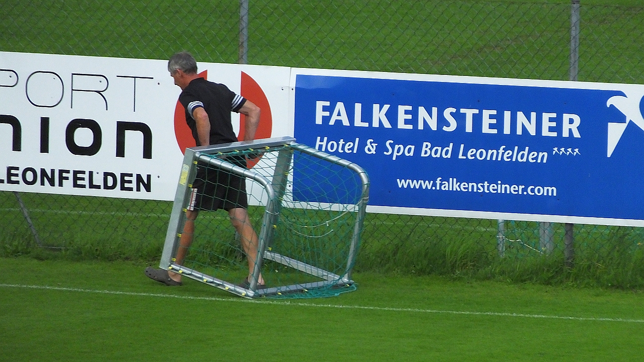 Auch die ganzen Trainingsgeräte mussten am Sportplatz wieder abgeholt und verstaut werden. Und der Platzwart räumt auf.