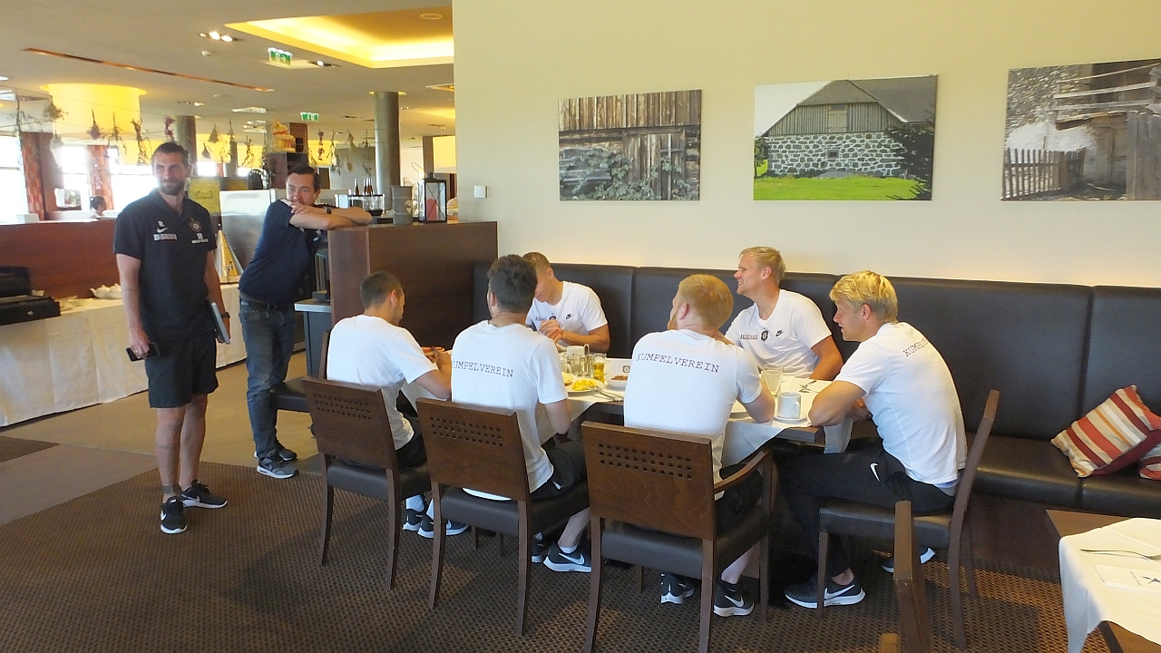 Gleich nach dem Gespräch am Frühstückstisch mit Sören Bertram & Co. ist unser Cheftrainer Daniel Meyer bei uns am Mikrofon. Der Ausblick auf Tag 9 im Veilchen-Camp: