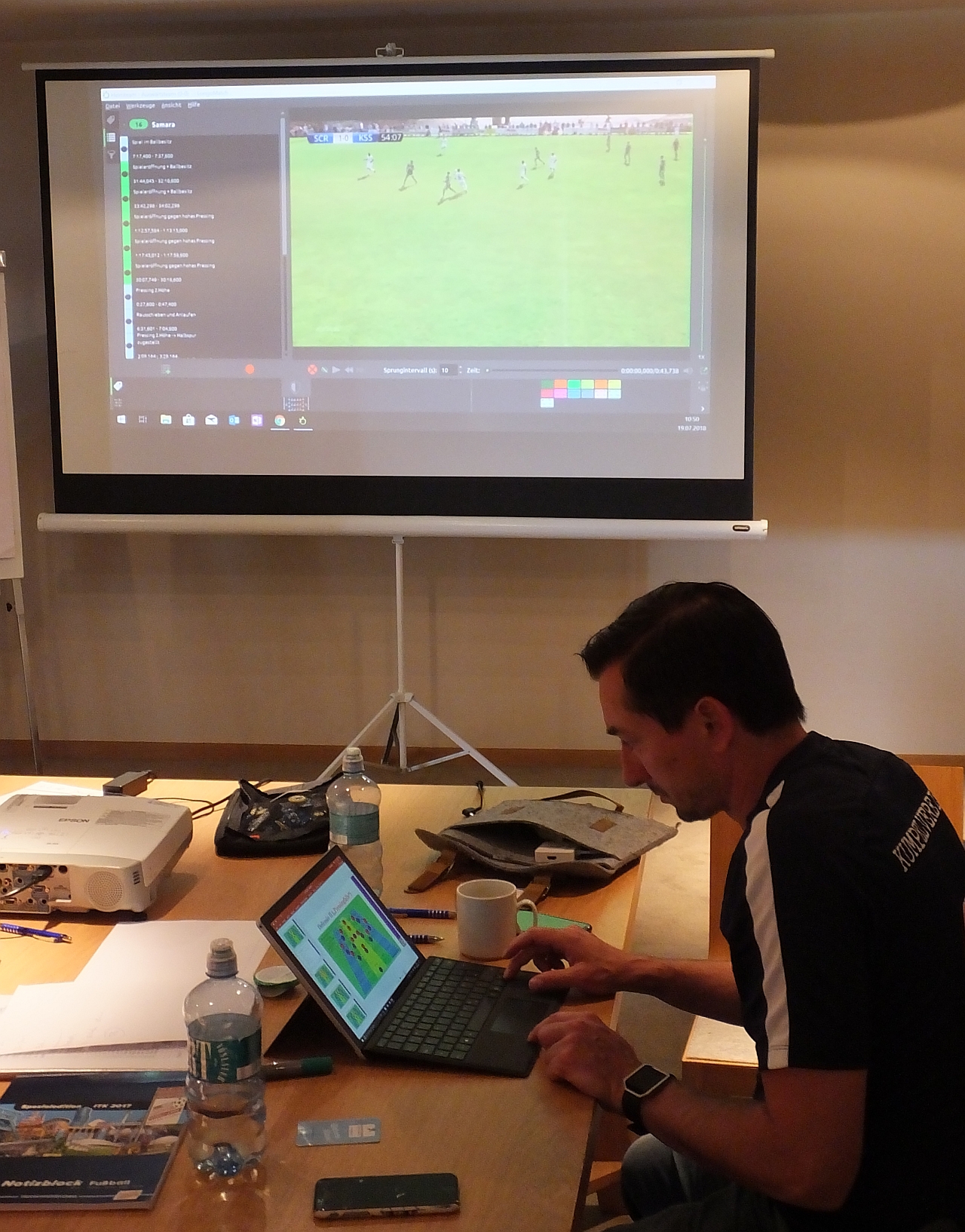 Hier läuft die Aktivierung bereits. Und Chefcoach Daniel Meyer bereitet die Teambesprechung vor.