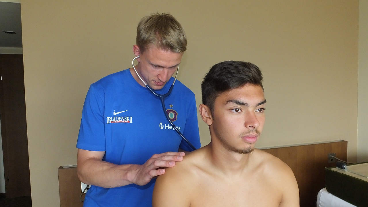 Über den Tag verteilt herrscht auch in der medizinischen Abteilung Hochbetrieb. So hat unser Teamarzt Thomas Flögel hier im Camp die sportmedizinischen Untersuchungen durchgeführt.