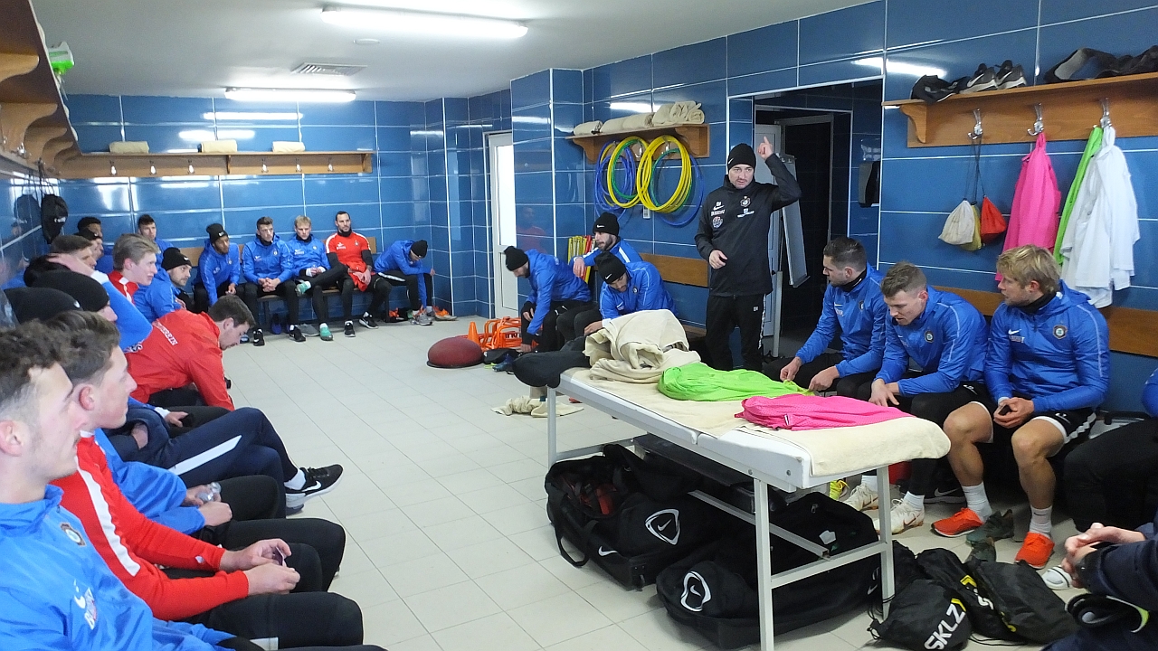Nach der Einheit in der Kabine. Jetzt sind es noch reichlich drei Stunden bis zum Test gegen Halle.
